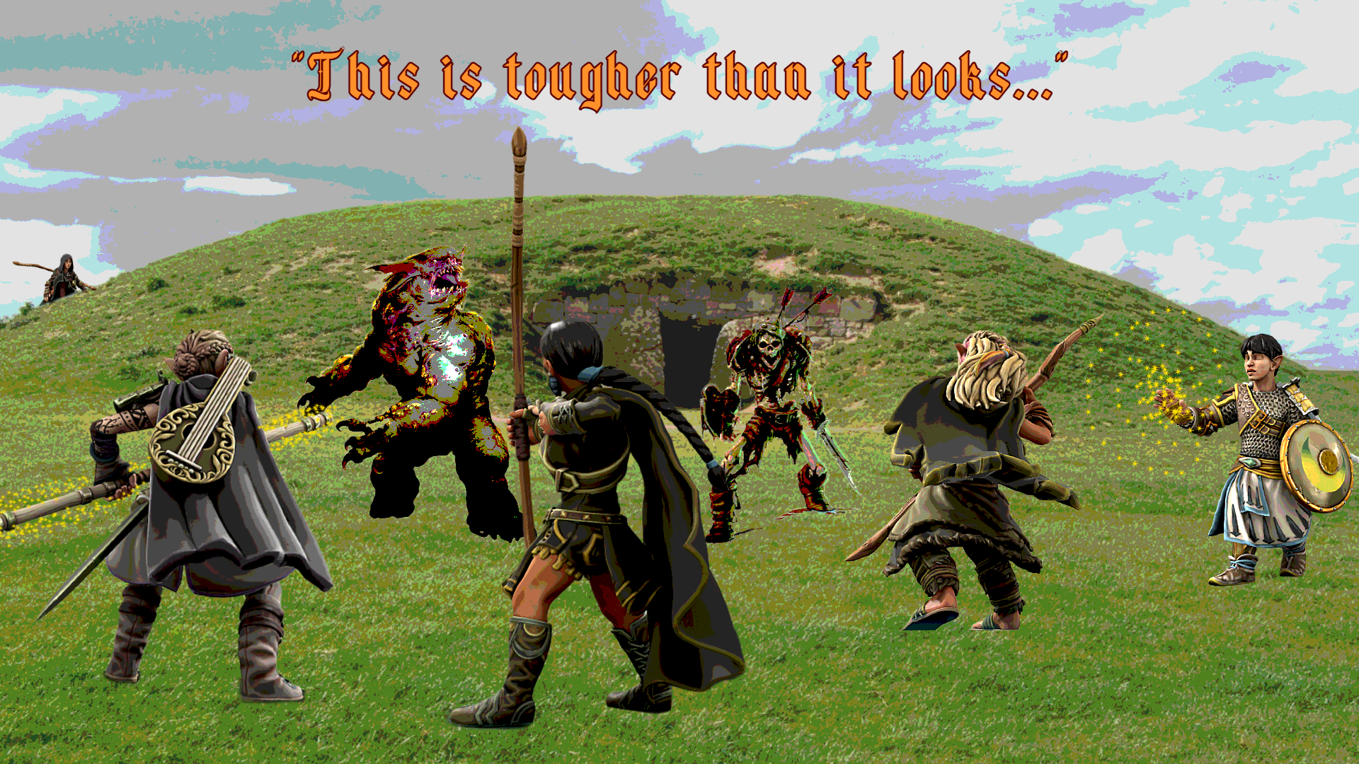 As we approached the mouth of tomb, it was a beautiful sunny day, blue sky, maybe some clouds, grassy plains, the green mound right in front of us, vines and moss grown over the stone entrance, gross-ass dretch attacks, eldritch-ass skeleton attacks, BOOM, a door from NOWHERE opens, a couple ravens and an eagle (I coulda sworn one of them was singing the same melody as something I’d heard before…) fly out, and this beautiful, and I mean beautiful… (I promise to control myself while writing this, the weirdo’s right next to me), elf woman with crazy hair and crazier raiments made of plants, furs, skins, honestly I’m having… trouble… just jotting all this down, gimme a sec